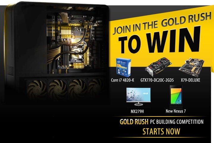 Jakarta – Buat kamu pengguna motherboard terbaru Asus, kamu berkesempatan untuk mendapatkan banyak hadiah lainnya dengan mengikuti kompetisi ‘Gold Rush’. Lewat kompetisi ini, Asus menantang kreativitas kamu dalam membangun dan memperindah PC desktop rakitan. Sayangnya, hanya motherboard ASUS terbarulah yang diperlombakan, chipset Intel® X79, Z87, H87, Q87, B85, H81 dan AMD FM2+ Series. Lomba ini diselenggarakan di seluruh dunia mulai 1 Oktober sampai 11 November 2013.