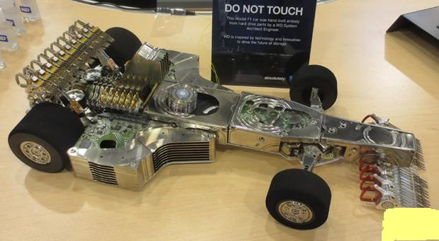 Rob Ryan dari Western Digital (WD) menggunakan bagian-bagian dari hard disk perusahaannya untuk membuat model mobil F1 tersebut. Hub roda depan dibuat dari drive motor 10.000rpm, sedangkan bagian belakang dibuat dari motor 4500rpm. Aktuator yang dipakai untuk membentuk sayap depan mobil dan panel sisi dibuat dari hard disk WD Red. Sayap belakang dibuat dari aktuator hard drive WD Velociraptor dan Scorpio.