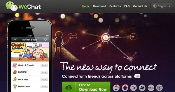 Berdasarkan peringkat App Annie, WeChat juga menjadi social app yang paling banyak diunduh di banyak pasar aplikasi pada beragam sistem operasi mobile, khususnya iOS. Di seluruh dunia lebih dari 100 juta akun terdaftar sebagai pengguna WeChat.