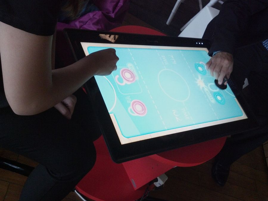 Maka kamu bisa main game dengan jemari atau asesoris seperti dadu elektronik, striker atau joystick. Air hockey misalnya, asik banget dimainkan di permukaan layar sentuh 10-point beresolusi Full HD 1920×1080 ini. Atau game Raiding Company, Roulette, Monopoly dan Tycoon (terbundel). Apalagi kamu bisa main bareng enam orang. Jika mau mengubah PC menjadi pusat hiburan, tinggal aktifkan saja antarmuka Aura.