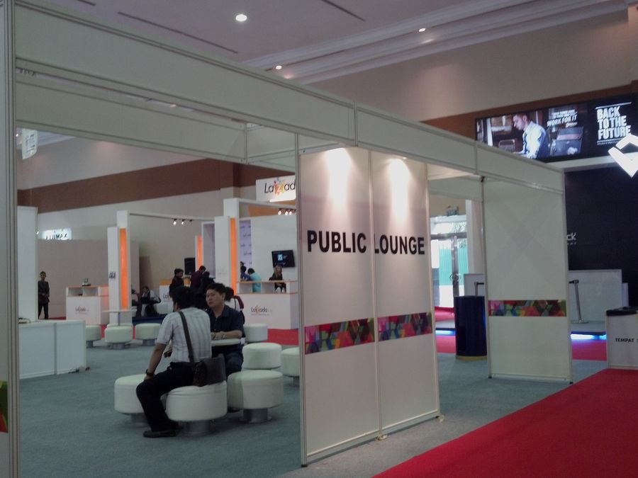 JAKARTA, PCplus – Capek ya berkeliling lihat-lihat barang di pameran hari ini? Pengen duduk? Tak usah repot khusus mampir di food court (kecuali kalau mau makan). Di pameran kali ini tersedia Public Lounge. Kamu bisa duduk-duduk santai di sini sambil lihat-lihat siapa tahu ada temanmu lewat. Browsing juga bisa karena di meja disediakan komputer.