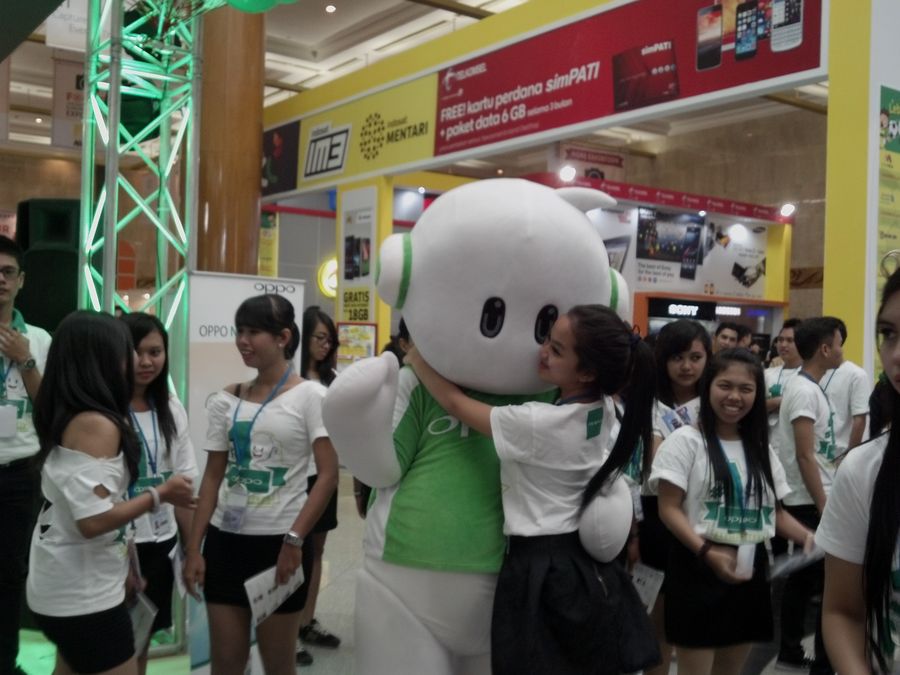 JAKARTA, PCplus – Di hal B dan Lobi Utama Jakarta Convention Center sedang digelar pameran smartphone dan produk telekomunikasi lainnya, serta gadget. Booth-booth tidak saja semarak dengan produk, tapi juga SPG dan maskot produk. Yang bulat dan menggemaskan ini maskotnya OPPO, smartphone dari “Amerika”