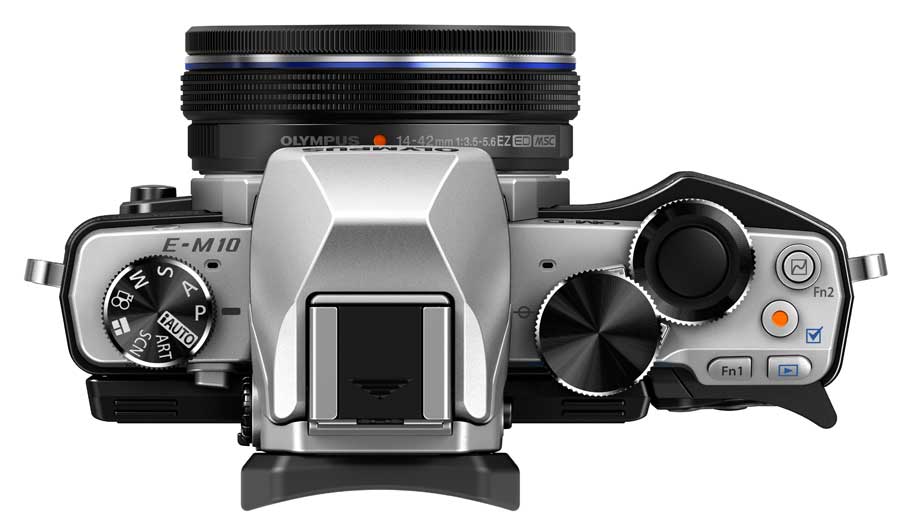 Ditilik dari rupanya, OM-D E-M10 sepintas memang mirip kamera saku. Badannya mungil, bobotnya pun cuma sekitar 350 gram dan bisa dengan mudah masuk kantong celana. Tapi desainnya tak seperti kamera saku lain yang umumnya simpel. Olympus OM-D E-M10 justru lebih mirip kamera profesional DSLR mungil lengkap dengan tombol putar untuk mengganti moda dan setelan kamera lain. Hotshoe untuk kaitan flash eksternal yang jarang ada di kamera saku tersedia di E-M10, tapi tetap menyediakan flash built in buat mereka yang enggan repot membawa flash tambahan.