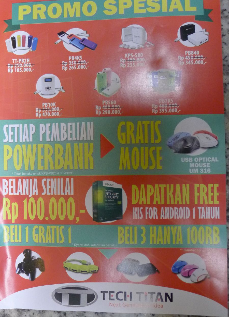 Promo lain dari Tech-Titan antara lain beli powerbank dapat gratis mouse.
