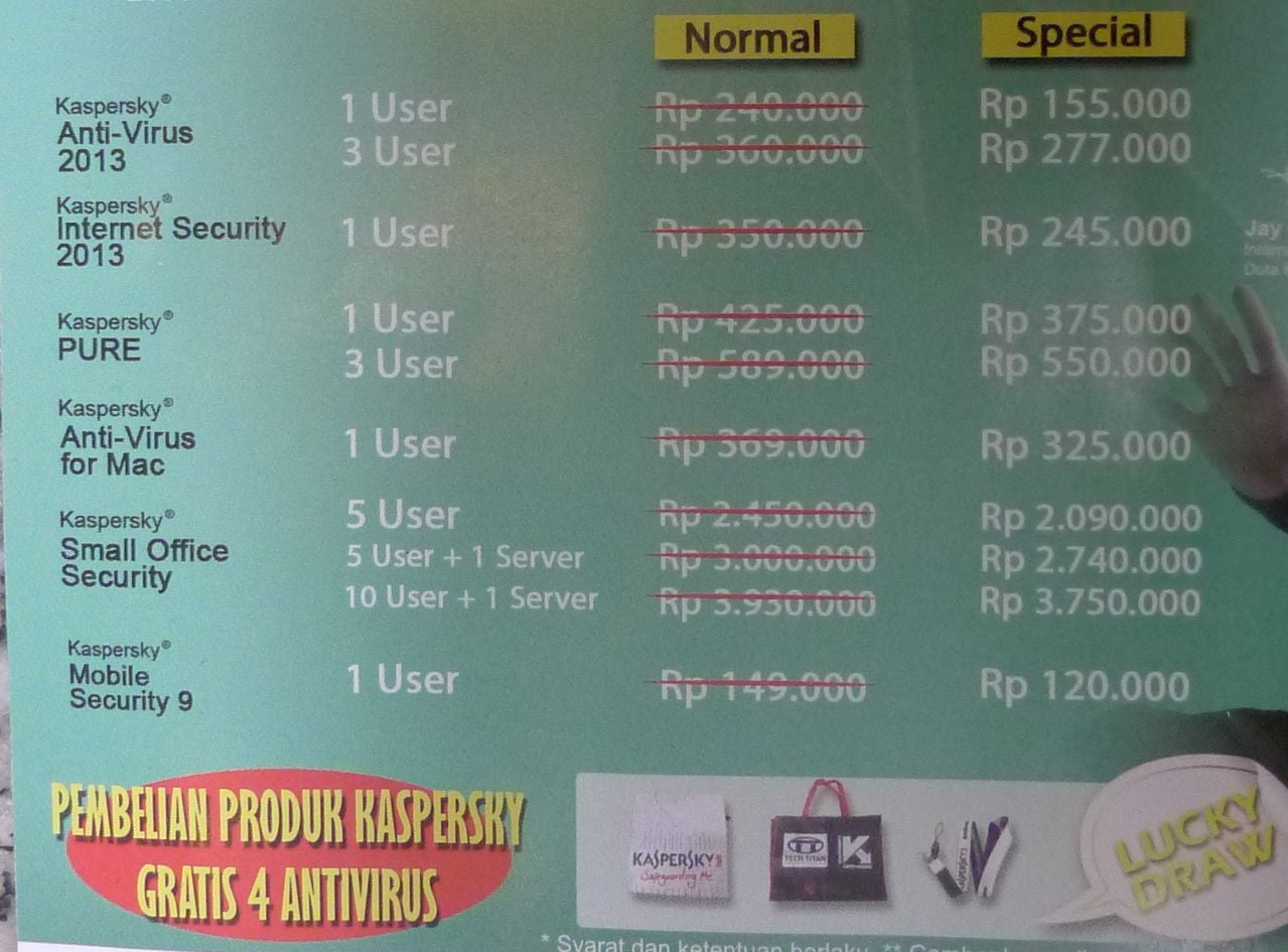 Ada juga korting harga untuk produk antivirus Kaspersky.