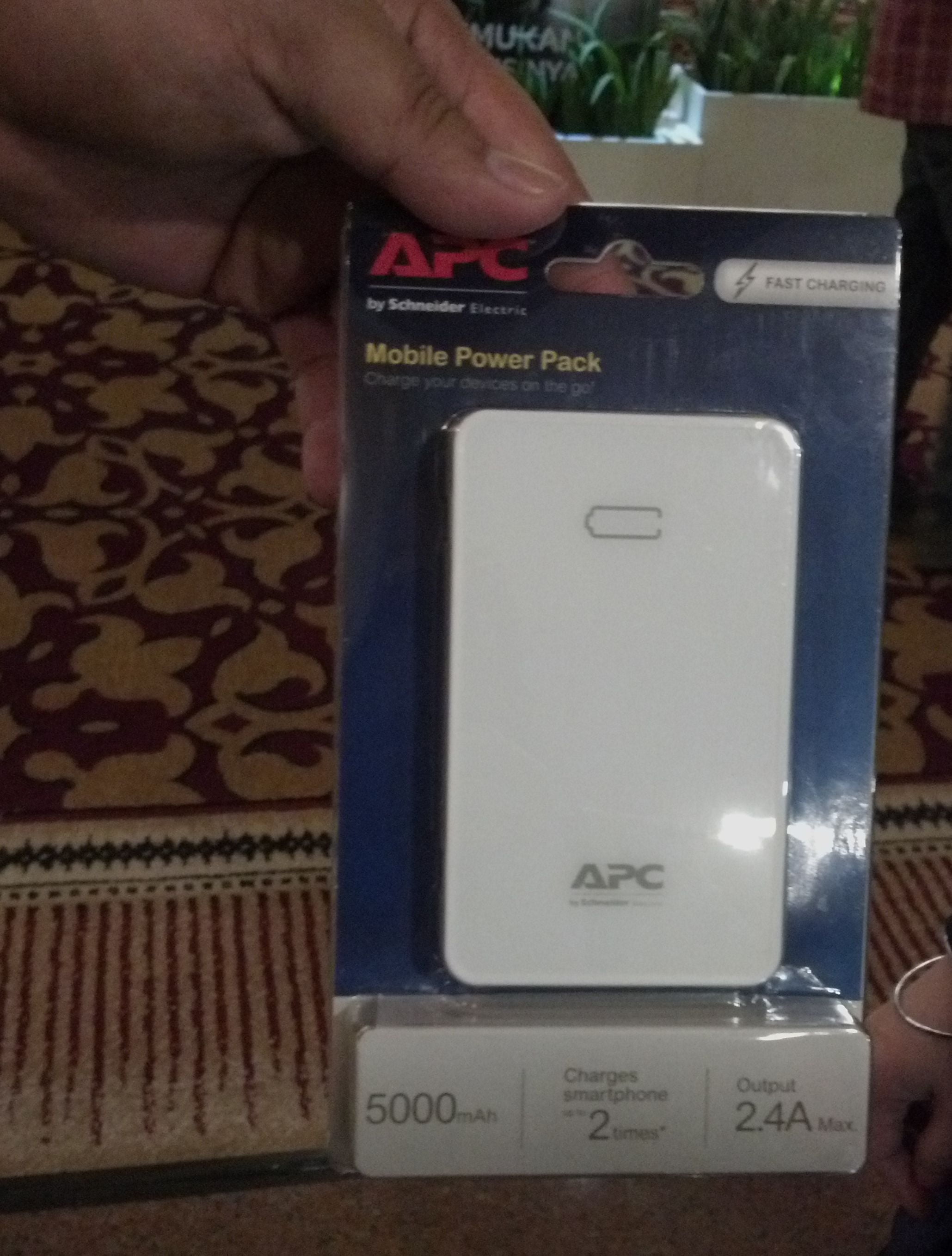 Apa sih kelebihan power bank ini? “Merek APC adalah jaminan mutu. Bisa charge dua smartphone bersamaan,” tutur Michael Kurniawan (Business Vice President, PT Schneider Electric IT Indonesia) tentang power bank-nya. Power bank dengan seri HBN itu mengemaskan baterai Lithium Polymer. Warna casing-nya bisa dipilih antara hitam dan putih.
