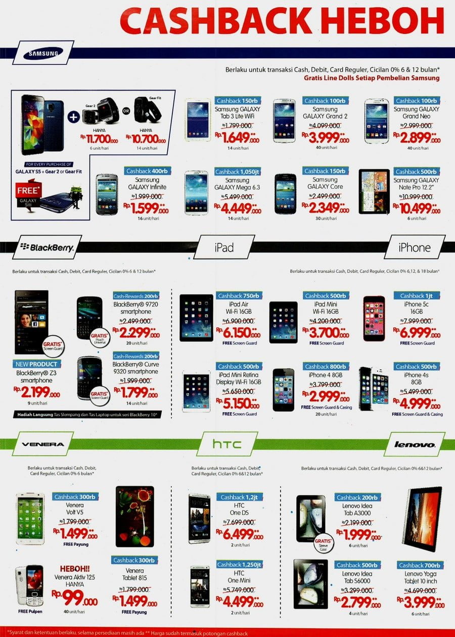 Di stand Erafone, kamu bisa dapat cash back loh. Jumlahnya bervariasi, tergantung merek dan model smartphone atau tablet yang kamu inginkan.Mau HTC, Lenovo, Apple, BlackBerry, Samsung, Venera ada kok.