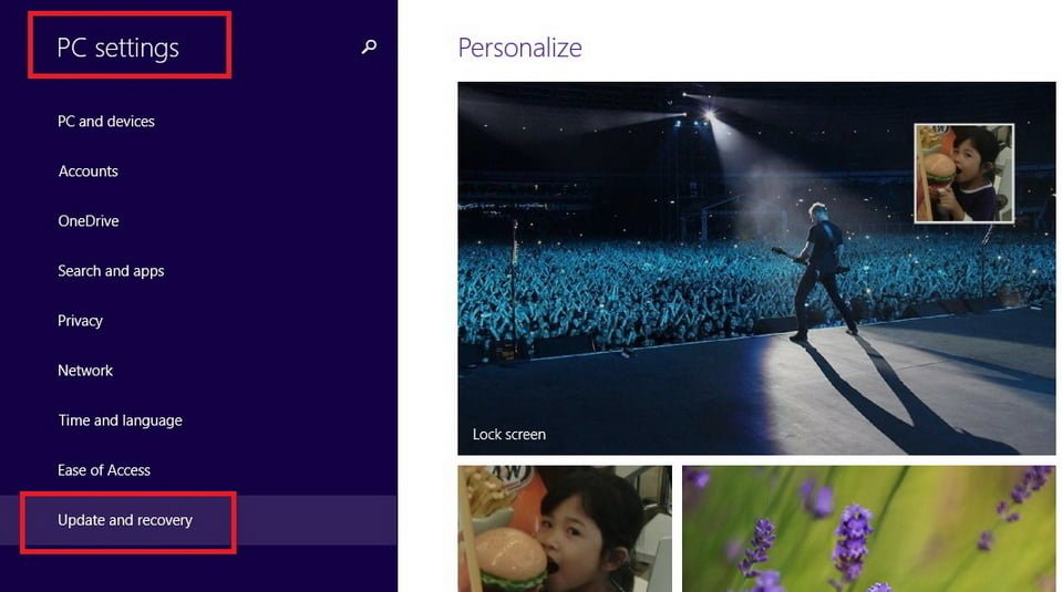 Tekan tombol Windows+I dan pilih Change PC Settings. Cara ini berlaku pada mode Modern UI ataupun Desktop. Pada menu, pilih Update and recovery>Recovery.