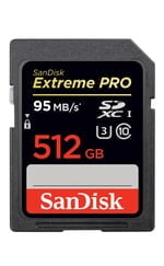 Sandisk Extreme Pro SDXC UHS-1 ini menjadi kartu SD berkapasitas terbesar saat ini. Ia menawarkan dukungan untuk rekaman Ultra HD 4K dengan laju transfer mencapai 95Mbps dengan kecepatan tulis 90Mbps. Selain kapasitas tinggi, kartu SD ini tahan suhu ekstrim, air, getaran dan x-ray, jadi tidak masalah jika kamu lupa mengeluarkannya dari saku celana jin yang sedang dicuci.
