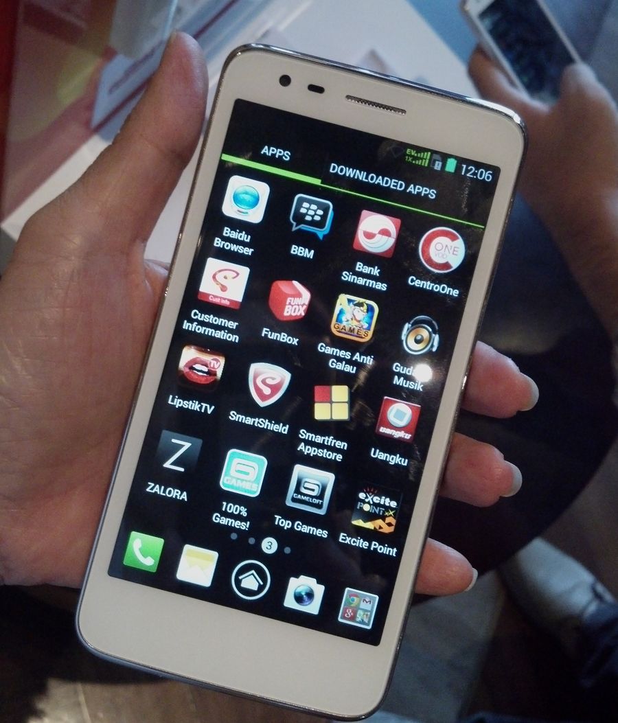 “Layarnya (G2) yang sebelumnya 4,5” kini di-expand menjadi 5”. Biasanya untuk layar sebesar itu, harganya sekitar Rp 1,5 juta. Yang ini nyaris Rp 1 juta. Layarnya luarbiasa, IPS. OS-nya Android 4.4 KitKat. Chip terbaru dari Qualcomm, baterai lebih besar, dan kamera lebih bagus. Sudah otofokus,” kata Djoko.