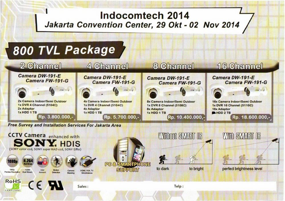 Jakarta, PCplus – Jalan-jalan deh ke booth M12 di lobby utama Jakarta Convention Center area Indocomtech 2014. Kamu bakal lihat aneka kamera pengaman rumah atau kantor yang dipaket dengan harga menarik. Bahkan AjHua memberikan cashback menarik untuk pembelian paket kamera mereka. (Cakra / Brama)