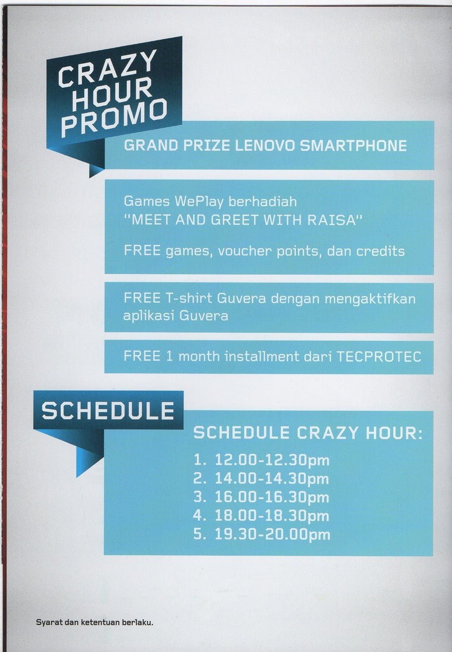 Hujan Hadiah Lenovo Indah PM, 31/10/2014 Jakarta, PCplus – Berbagai gadget pilihan mungkin bisa kamu temukan di booth Lenovo. Aneka smartphone dan tablet juga bisa kamu temukan di sini. Yang tak kalah menarik, berbagai bonus juga ditawarkan Lenovo.–klik gambar untuk memperbesar Indocomtech 2014 indocomtech 2014lenovo