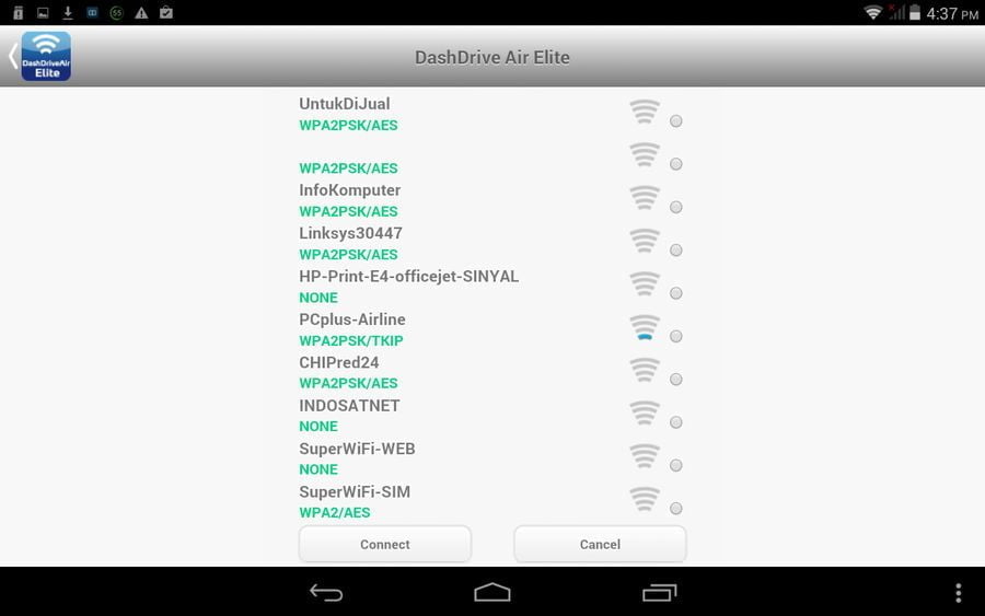 O ya, untuk seting nirkabel, tekan tombol sampai LED kanan menyala biru. Lalu dari perangkat yang akan dikoneksikan, carilah ADATA AE800xxxx. Masukkan password yang diberikan. Setelah itu unduh app gratis ADATA DashDrive Air Elite dari Google Play Store atau App Store, dan instal. Aktifkan app, lalu masuklah sebagai admin.