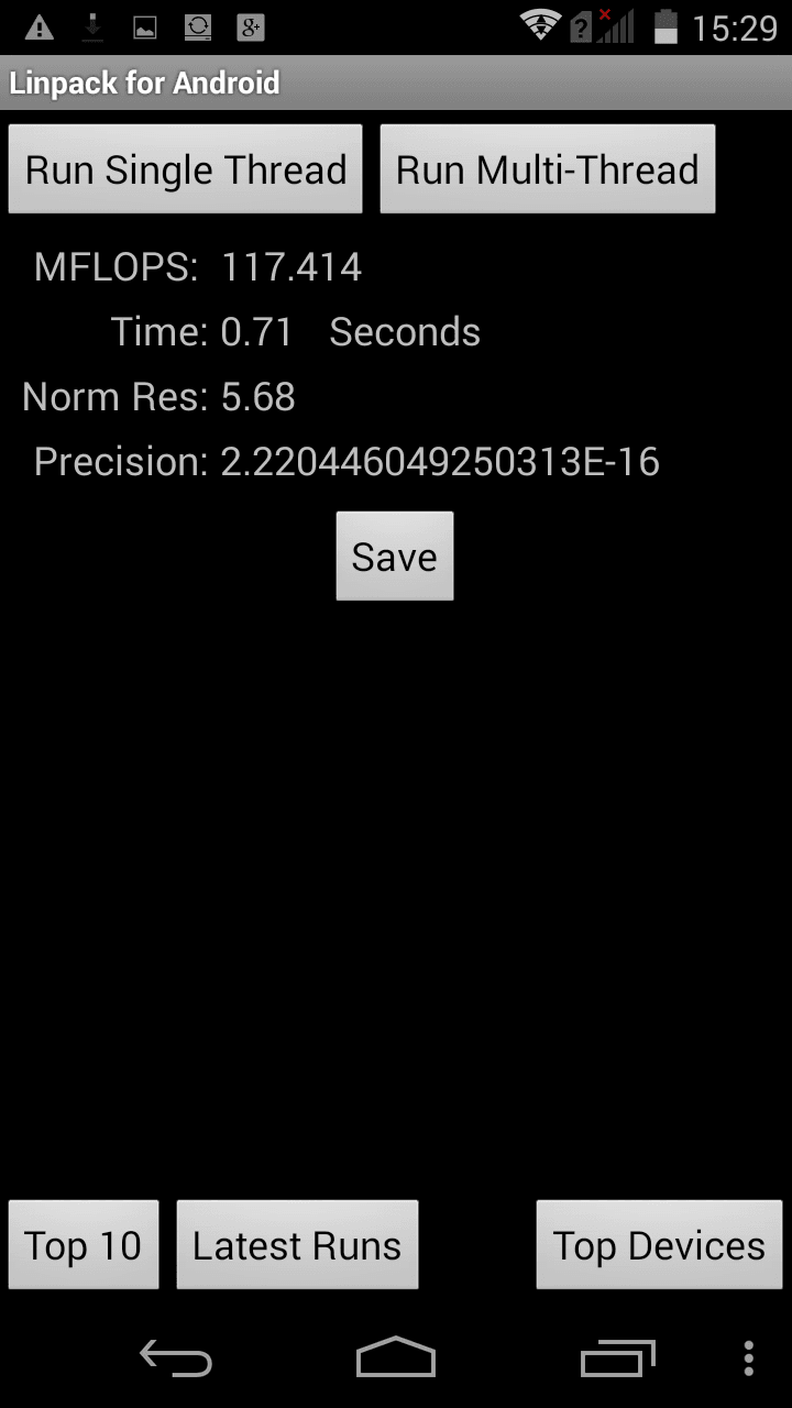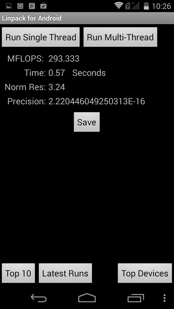Linpack yang dipakai untuk menguji prosesor mencatatkan hasil 117 MFLOPS untuk moda single thread, sementara moda multithread di 293