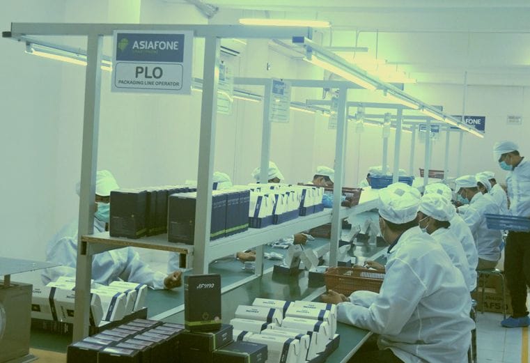 Asiafone menyiapkan pabriknya di kawasan Pluit, Jakarta Utara sampai siap beroperasi tahun ini, 2015, selama satu tahun. Pabrik ini terdiri dari dua jalur produksi dengan total kapasitas produksi maksimal saat ini 100.000 unit per bulan. O ya, lokasi pabrik menyatu dengan kantor puast Asiafone. Hal ini, menurut Asiafone, agar proses pengawasan, manajemen dan penjualan produk-produk Asiafone ke seluruh Indonesia lebih mudah dilakukan.
