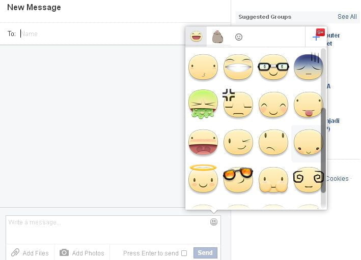 - Kalau mau kirim stiker, cara area Messages di halaman Facebook-mu. Klik New Message untuk memunculkan kotak pesan. Masukkan nama teman atau kerabat yang ingin kamu kirimi stiker, lalu klik pada wajah kecil abu-abu di sisi kanan atas kotak pesan yang kosong