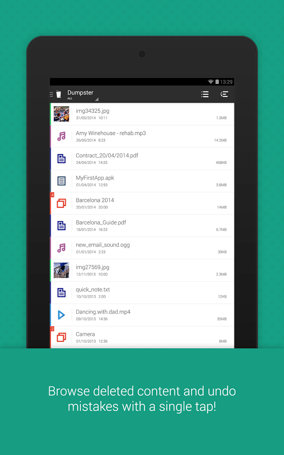 App besutan Baloota ini bekerja seperti recycle bin di komputermu. Maksudnya, kamu akan bisa memulihkan file-file gambar, musik, video dan tipe lain yang sudah kamu hapus. Jadi kalau tak sengaja menghapus sesuatu, kamu tak usah panik lagi deh.