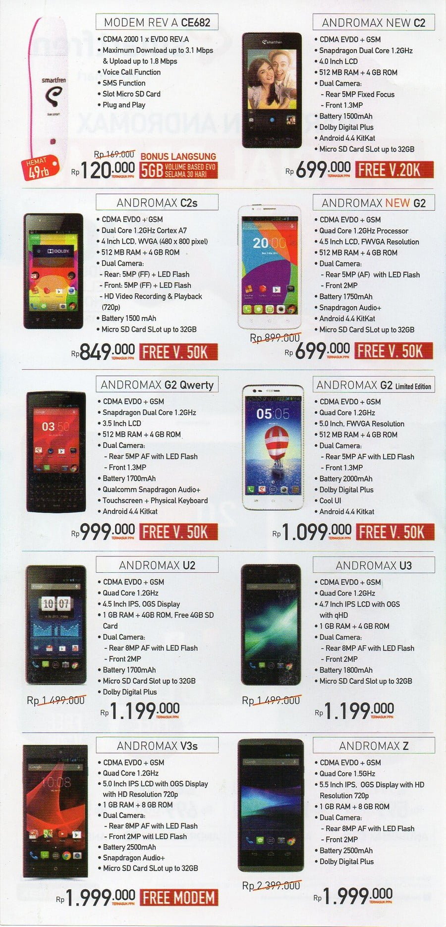 Jakarta, PCplus – Tidak hanya menampilkan Andromax Q, Smartfren juga menawarkan diskon untuk berbagai smartphone lainnya. Beberapa smartphone yang tidak mendapatkan diskon pun diberikan bonus.