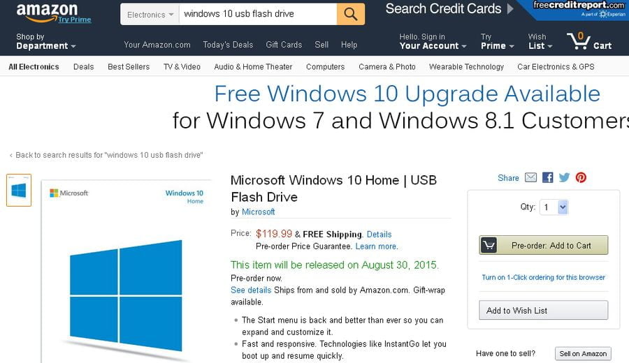 Eh kalau tidak punya Windows 7 atau Windows 8.1 dan mau bikin PC baru bisa tidak ya? Hmm, kamu harus pakai Windows 10. Kamu bisa memesannya mulai sekarang di Amazon. Di situs ini, Windows 10 Home dijual US$ 119,99, sedangkan Windows 10 Pro dibandrol US$ 199,99. Keduanya akan dikirimkan dalam sebuah USB flash drive.