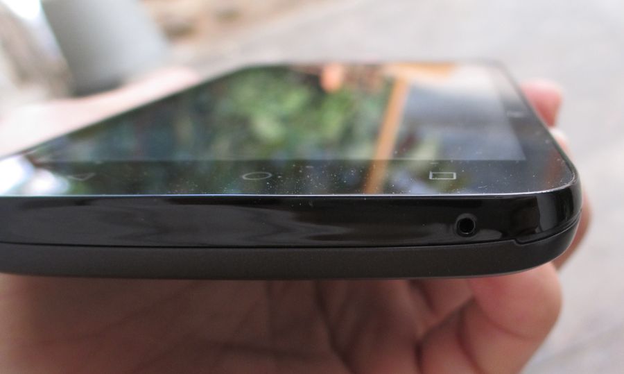 Jack headphone ada di bagian kiri atas, sedangkan port microUSB untuk koneksi dan charging ditempatkan di bagian kanan atas.
