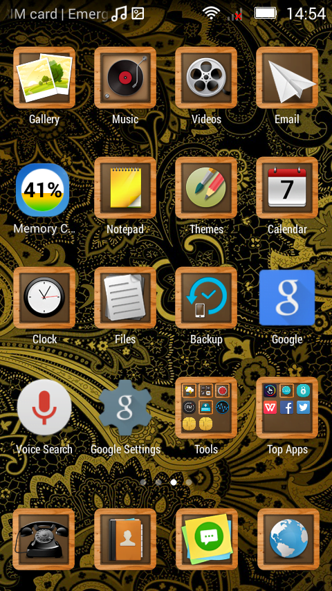 Semua app disajikan di home screen. Untuk mengatur apps, kita bisa membuat folder-folder terpisah. O ya, jika kurang suka dengan tampilan app, silakan menggunakan launcher.