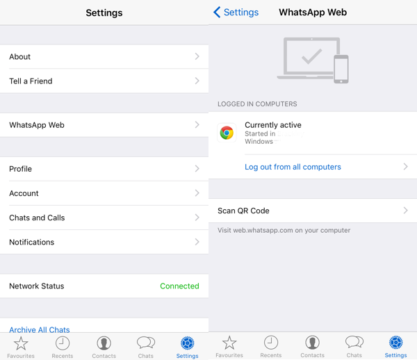 2. Agar WhatsApp Web Client bisa bekerja di iPhone-mu, masuklah ke menu Settings dari app WhatsApp di ponselmu dan tap opsi WhatsApp Web. Kamu akan diminta mengunjungi situs Web WhatsApp dan mendapatkan QR Code unik. Scan kode QR ini dengan menggunakan kamera ponselmu. Maka kamu akan melihat versi desktop dari WhatsApp.