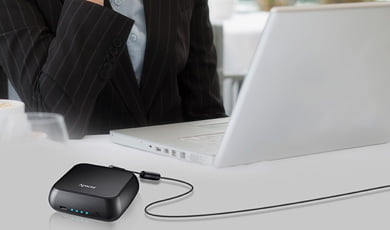 Kalau tidak suka power bank yang besar dan berat, kamu bisa melirik Apacer B222. Produk yang ditujukan untuk mengisi daya baterai notebook ini berkapasitas 11.400mAh. Outputnya maksimal 19V 3,42V. Jadi kamu bisa menggunakannya tak hanya untuk mengasup baterai notebook, tapi juga smartphone, tablet dan perangkat lain.