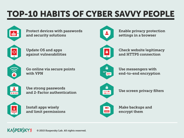 Menurut Kaspersky Lab, mereka yang tergolong cyber savvy punya 10 kebiasaan berikut: