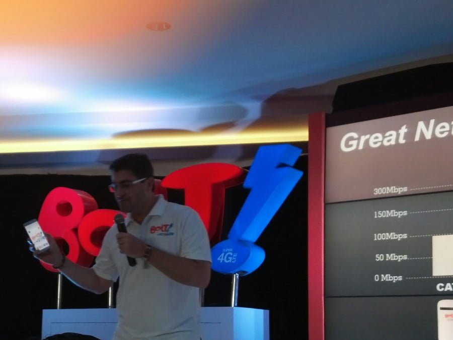 Gubiani lalu menunjukkan slide yang memamparkan tarif Bolt 4G Ultra LTE. Di slide terlihat tarif data plan prabayar Bolt sebesar Rp 12 ribu per GB. Sementara tiga saingannya masing-masing menawarkan Rp 87 ribu/GB, Rp 25 ribu/GB dan Rp 100 ribu/GB.