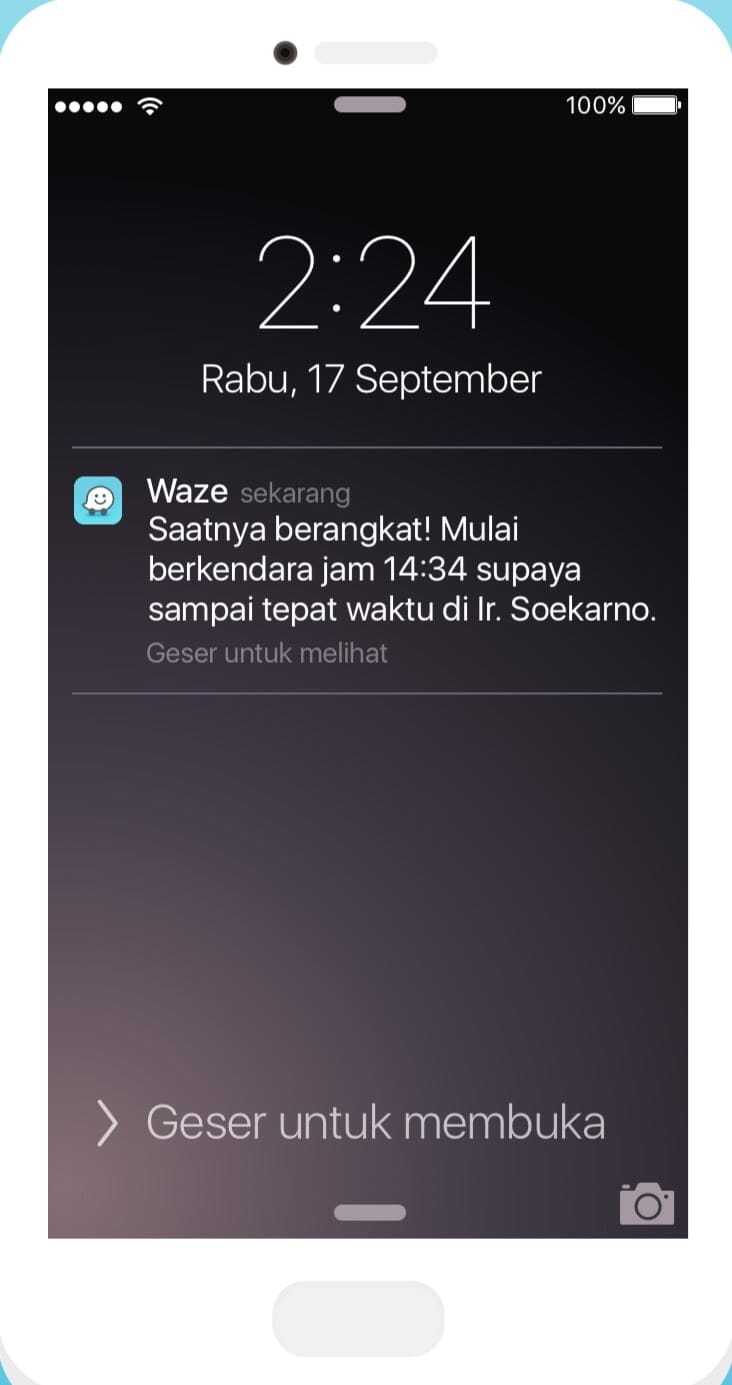 O ya, kamu yang menjadwalkan perjalananmu untuk besok atau minggu depan akan mendapat peringatan dari Waze apabila sudah mendekati jadwal acara yang sudah kamu rencanakan itu. Waktu keberangkatanmu akan selalui diperbarui sesuai dengan kondisi jalanan real-time agar kamu terhindar macet. Kamu juga bisa mengubah lokasi asalmu kapan saja.