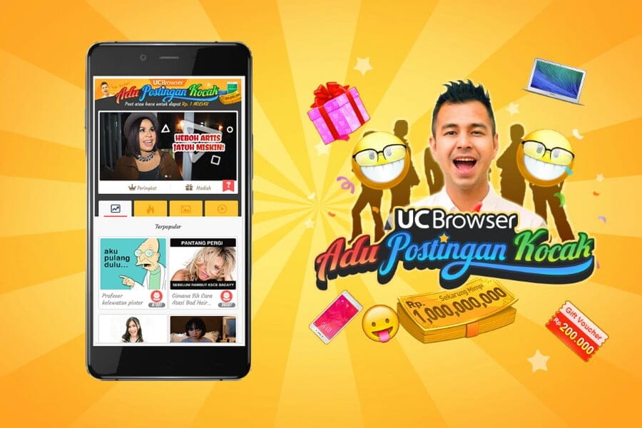 Ini adalah kontes bakat di internet pertama dan satu-satunya di UC Browser. UC Browser Adu Postingan Kocak bisa kamu ikuti sampai 6 April 2016. Eh, selain mengirim konten lucu, kamu yang nonton dan memilih konten yang paling lucu juga bisa mendapatkan hadiah loh.