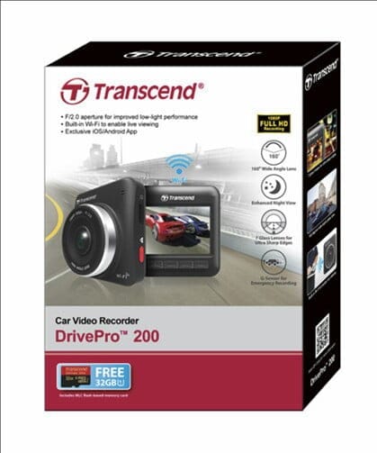 Transcend DrivePro 200 datang lengkap dengan kartu memori microSDHC 32GB yang dapat merekam video Full HD sampai 5 jam.