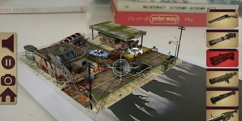Setelah melakukannya, arahkan kameramu ke file tersebut untuk mendapatkan sebuah peta. Kemudian, pindahkan ponsel untuk membidik tanda silang di displaimu ke zombie-zombie yang bertebaran di sekitar. Tembaki mereka.