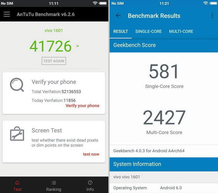 Jika melihat spesifikasi yang ada, Vivo V5 sudah cukup nyaman digunakan untuk berbagai aktivitas. Untuk membuktikannya, PCplus coba menjalankan beberapa aplikasi benchmark untuk melihat skor kinerjanya. Berikut hasilnya: