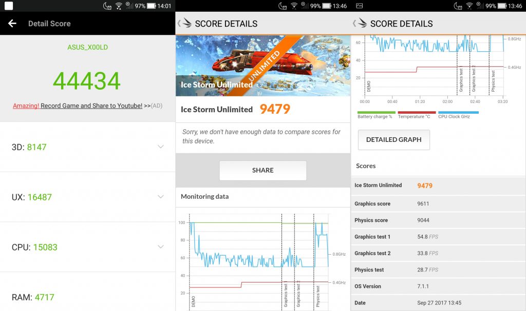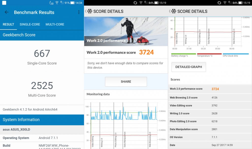 Dari pengujian dengan software AnTuTu, terlihat bahwa smartphone ini menawarkan performa yang memadai untuk ukuran smartphone mainstream masa kini. Demikian pula untuk aplikasi grafis yang ditunjukkan dengan software 3D Mark.